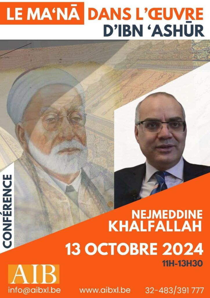 L’AIB a l’immense plaisir d’inviter pour la première fois le professeur Nejmeddine KHALFALLAH qui dispenserà une conférence intitulée “Le ma‘nā dans l’œuvre d’Ibn ‘Ashūr”.